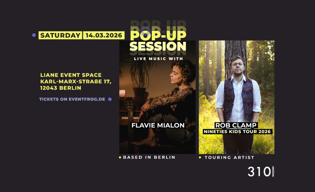 ‘Pop-Up Sessions’ is a monthly series of intimate concerts each with a concept, a line-up and the storytelling. We ‘Pop-Up’ a stage, in unique and interesting venues across Berlin for upcoming, emerging and touring artists to share their music and journey. With this series, we aim to transform how we engage with the artists and their craft. Check our agenda for 2026 for the latest Pop-Up Session and become part of a community-driven experience for you to enjoy music.